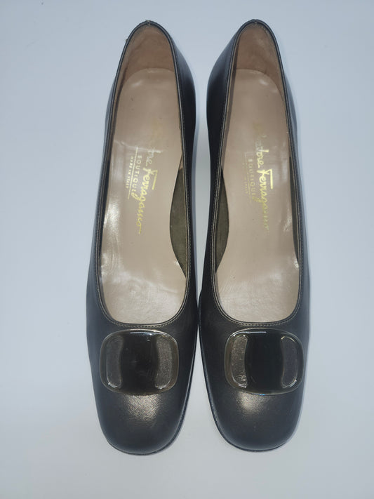 *Vintage* Salvatore Ferragamo Boutique Patent Leather Heels with Logo Hardware Size 8.5
