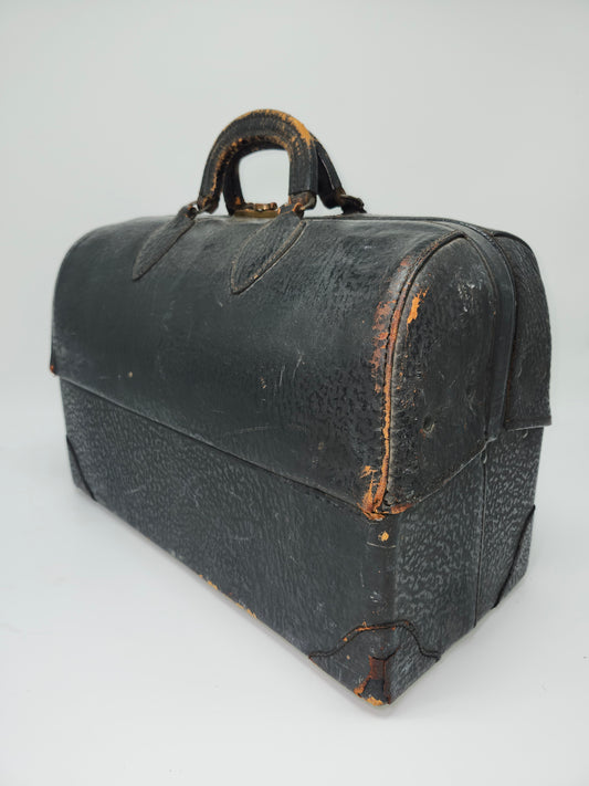 1900s Antique Doctor's Bag in Black Top Grain Cowhide