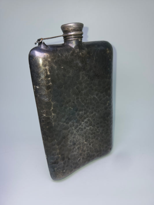 1920s Art Deco Hammered Apollo Silver Co. Flask