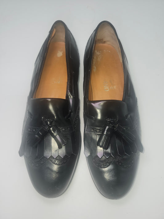 *Salvatore Ferragamo* "Lucas" Kiltie Tassel Black Leather Moccasin Loafers Men's Size 10