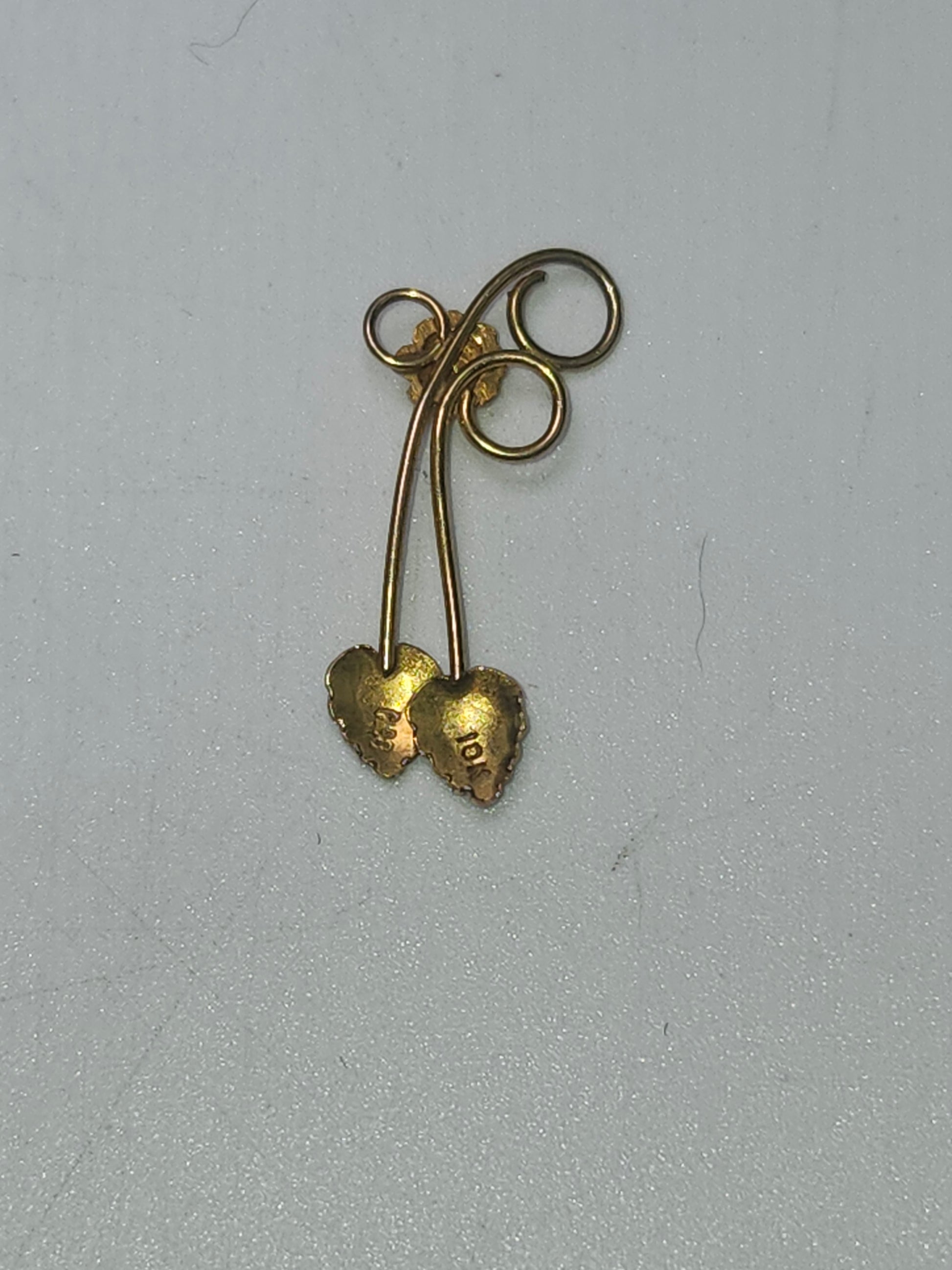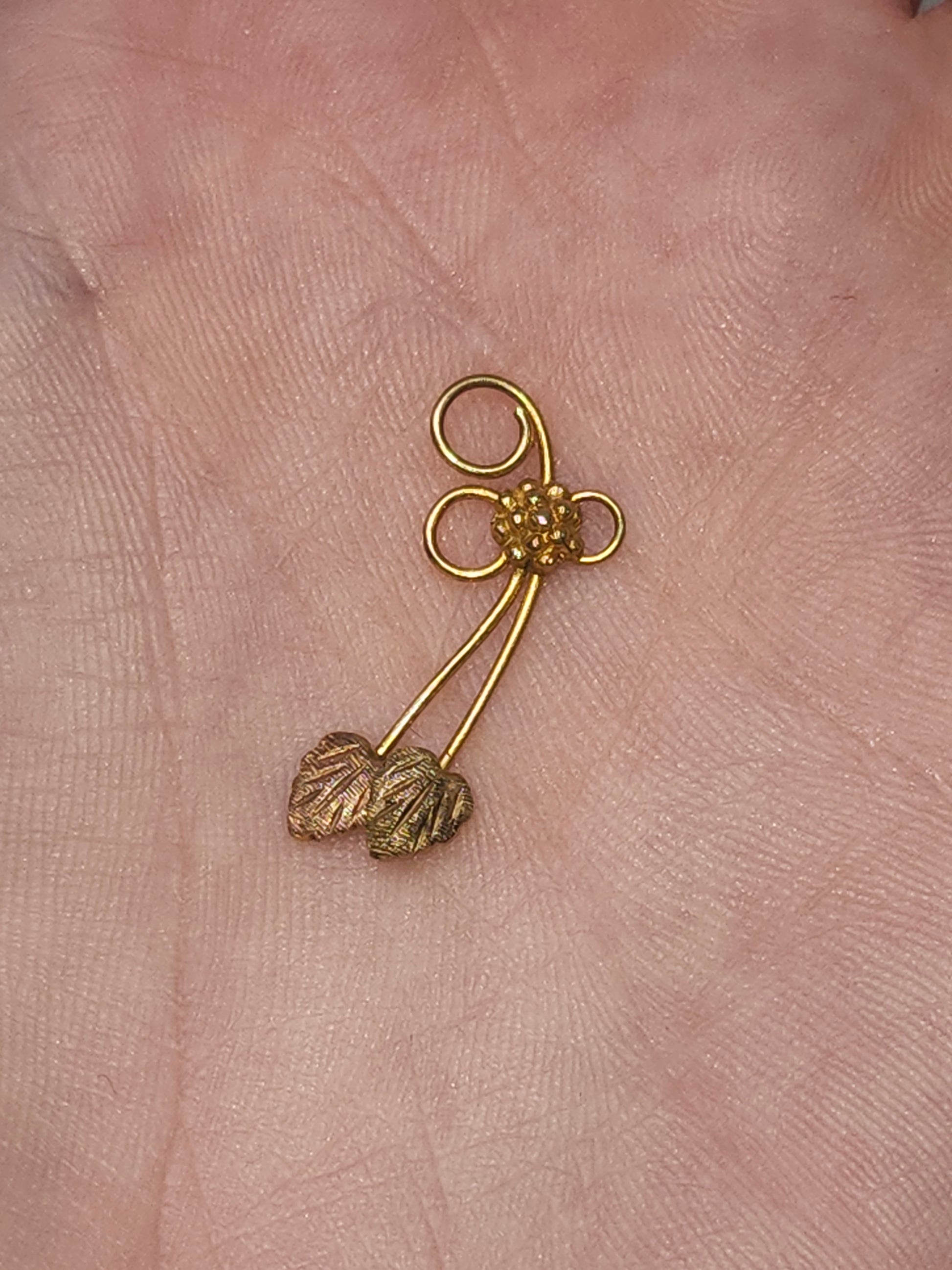 10K Gold Tri-Colored Grape & Leaves Pendant, stamped E. Co., total weight: .49 grams of solid 10K gold, acid tested.