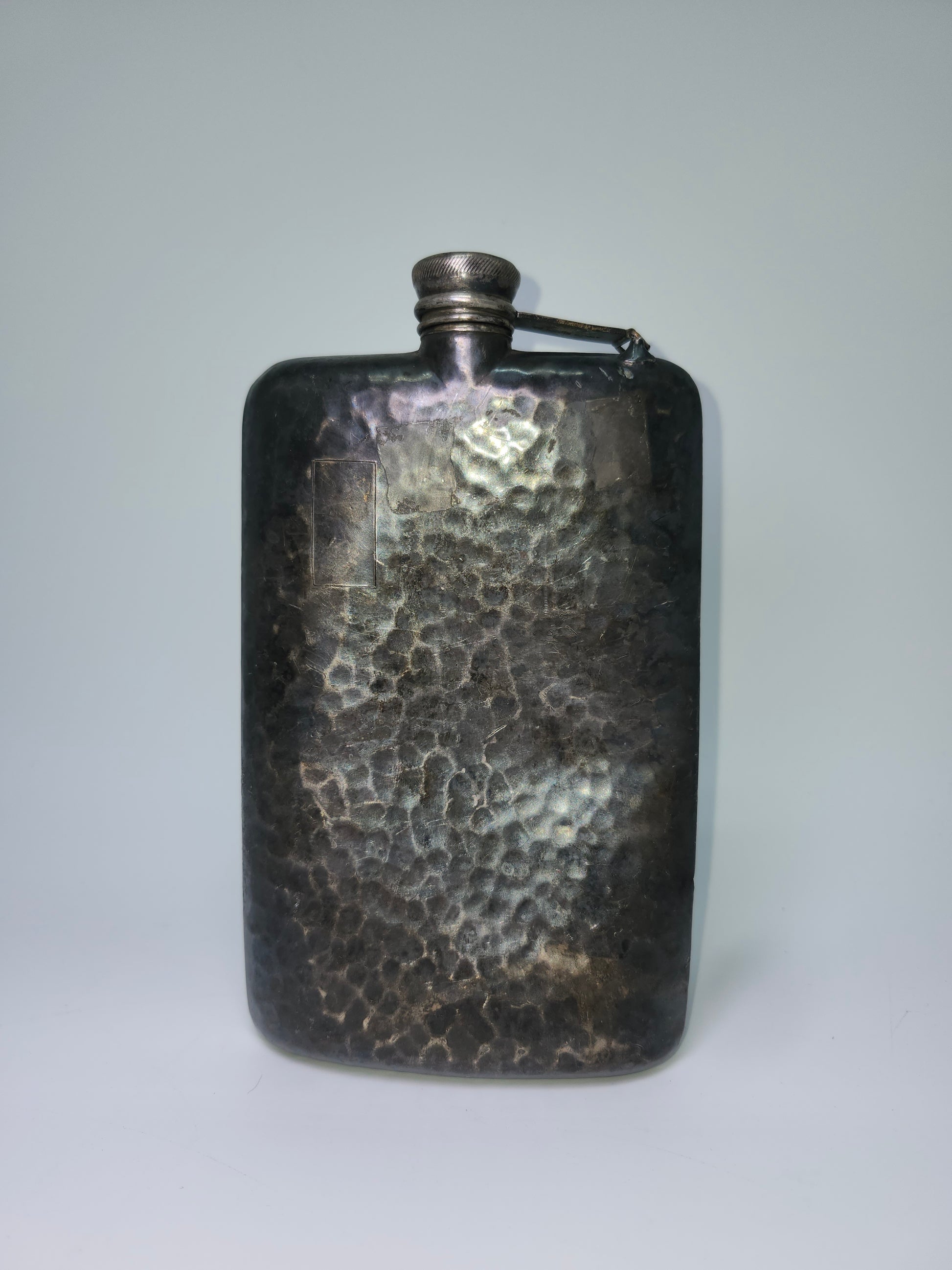 1920s Art Deco Hammered Apollo Silver Co. Flask. A fun & historic piece of American Prohibition history!
