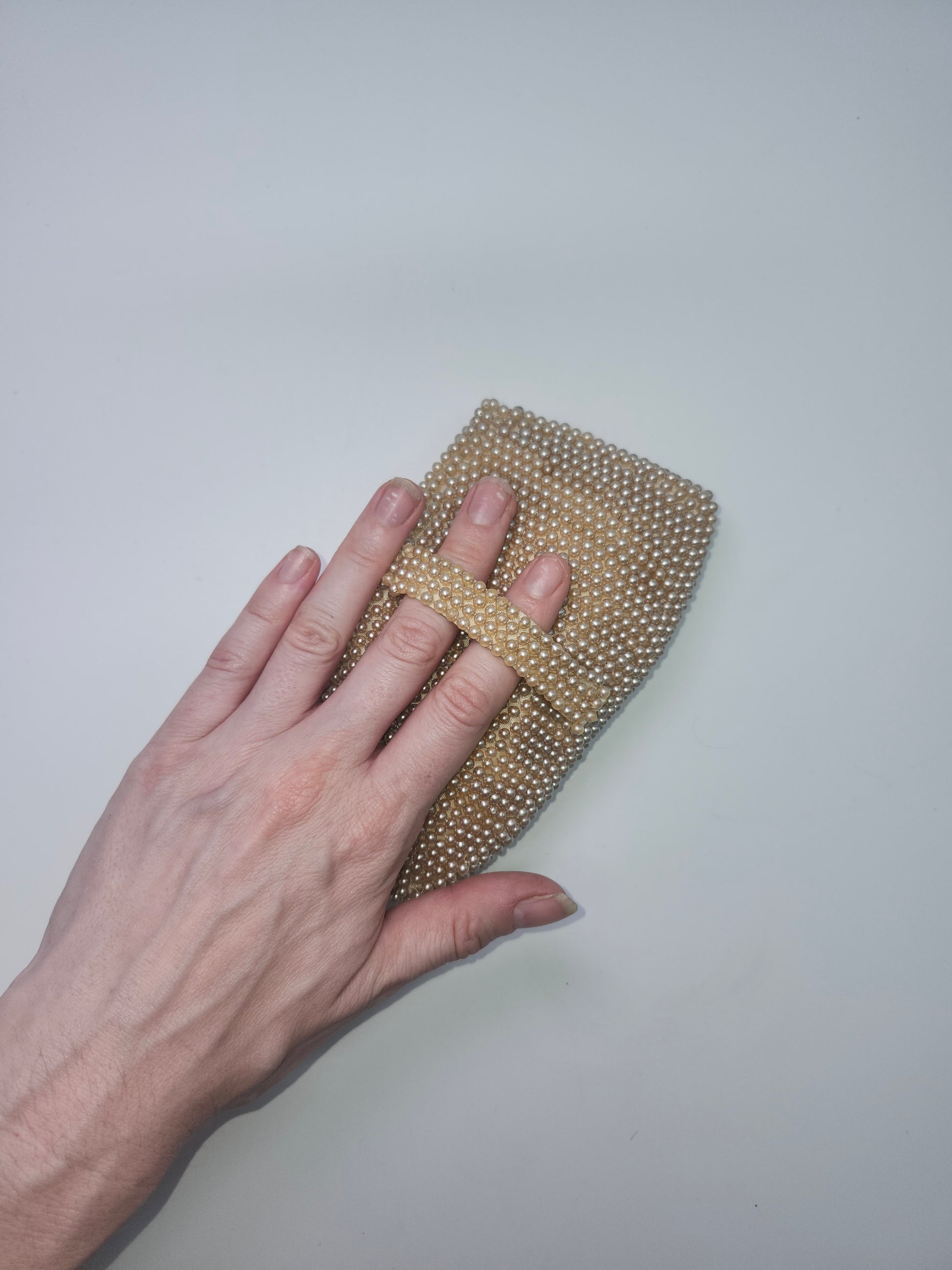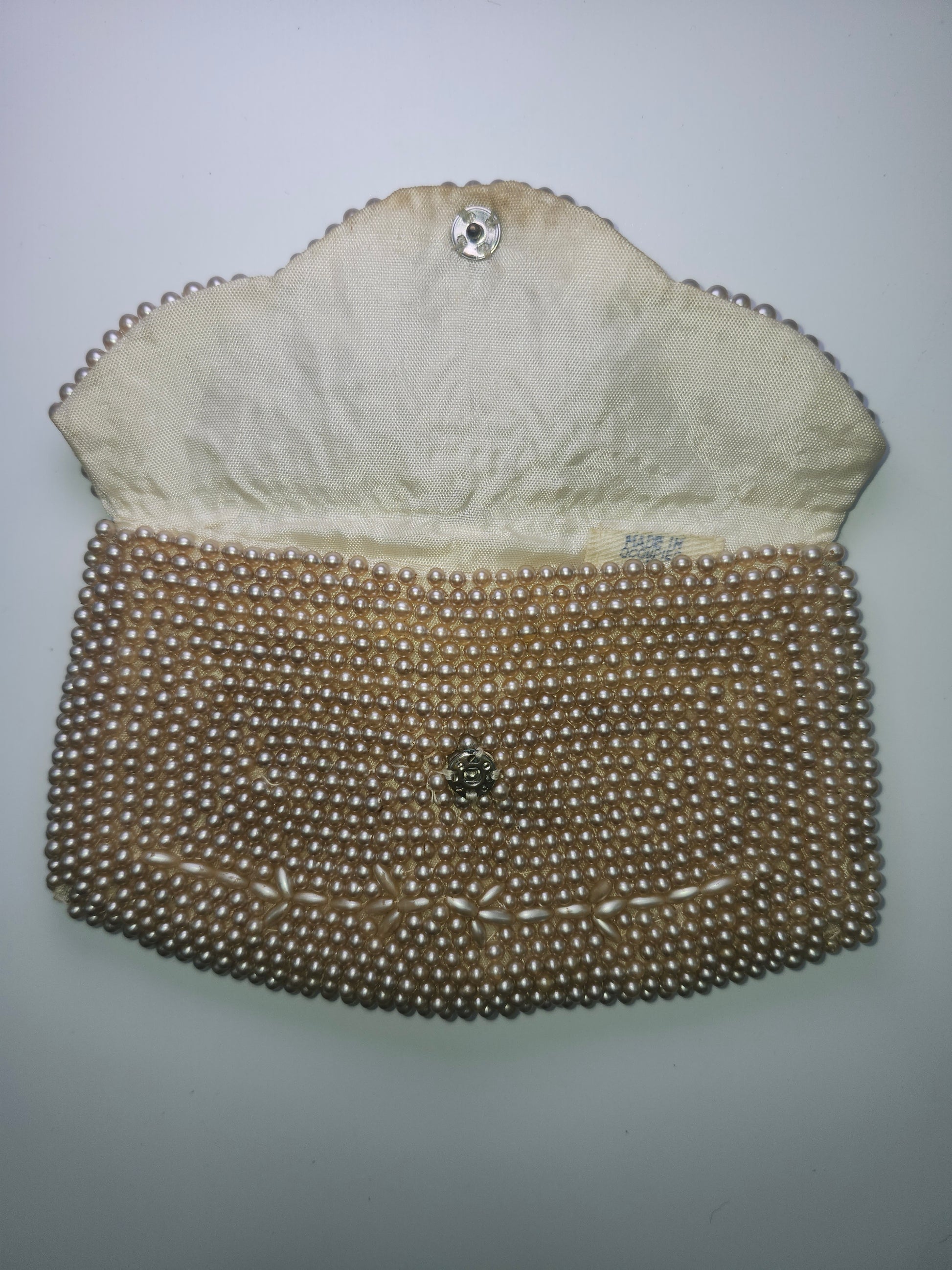 1940s Ivory Pearl Beaded Clutch Made in Occupied Japan