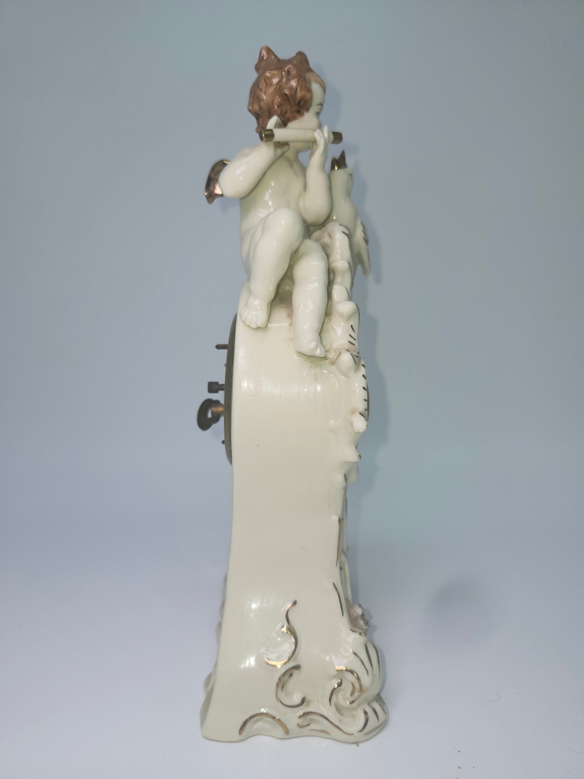19th Century Dresden Porcelain Bisque Cherub Wind-up Clock, made in Germany.