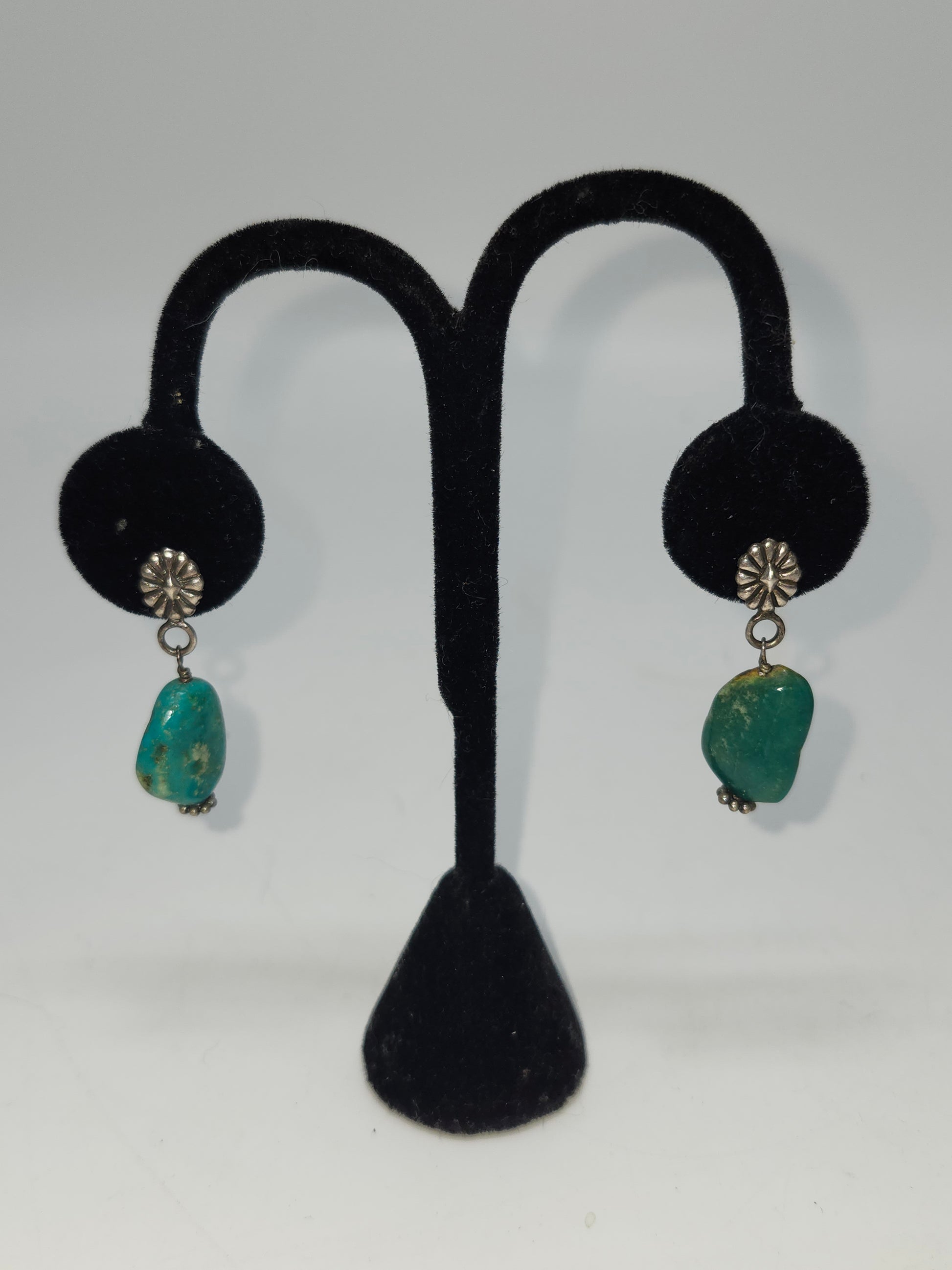 Sterling & Turquoise Nugget Earrings, by the Peyote Bird company. Total Weight: 5.80 grams, earring back are not sterling.