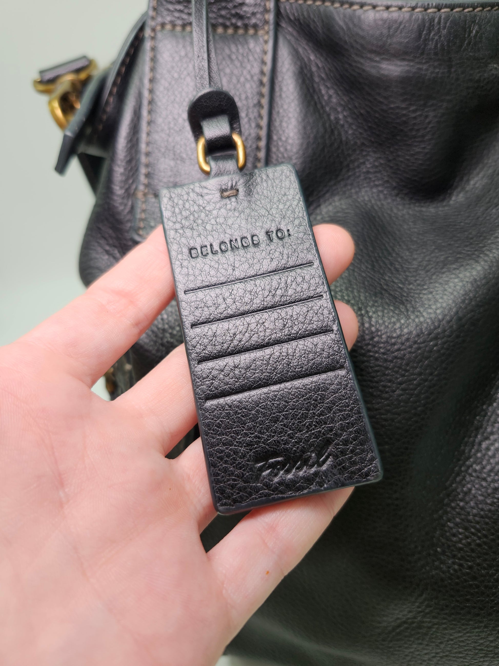 *Fossil* "Emerson" Medium Leather Satchel in Black Leather