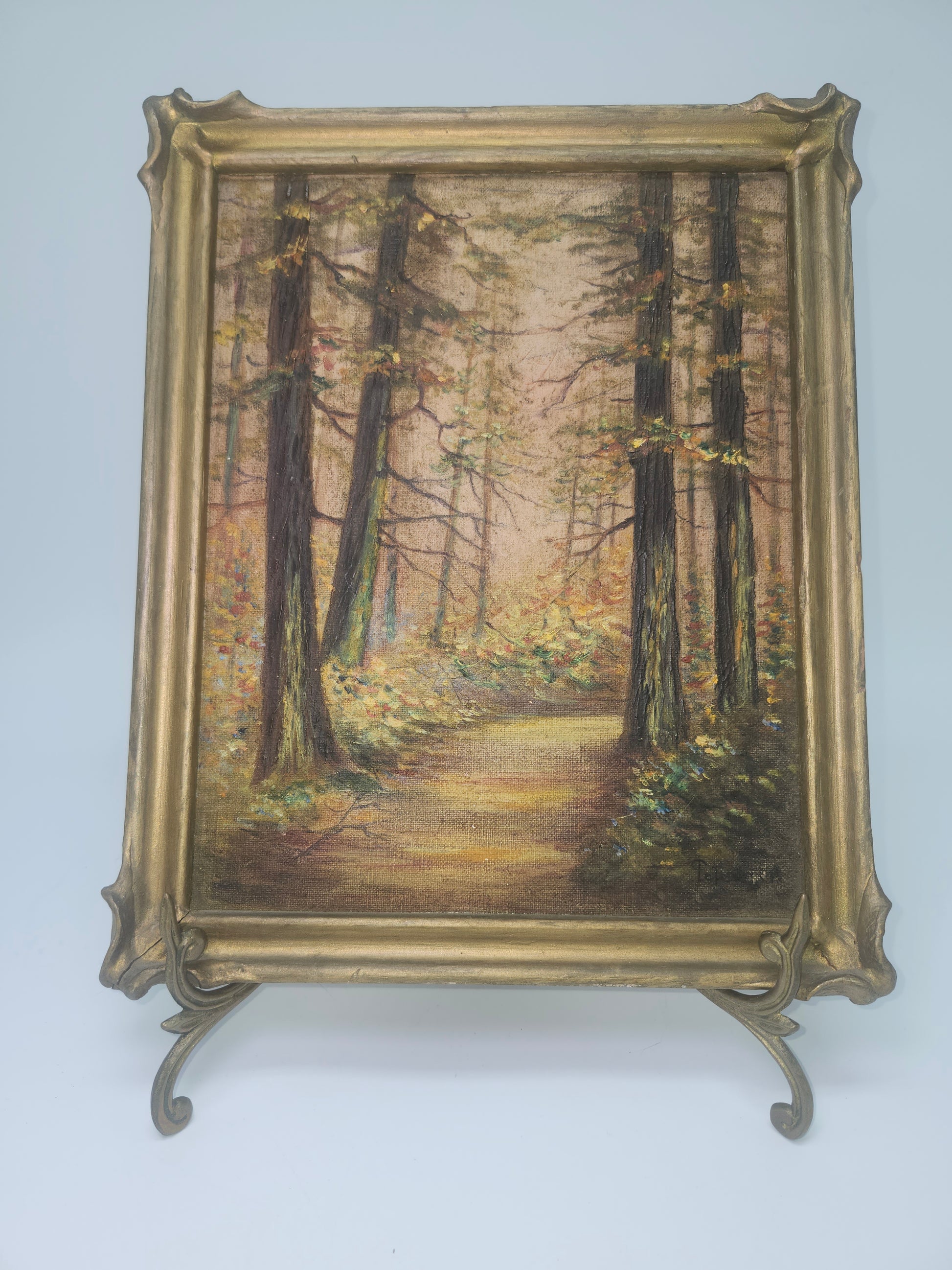 Gilded Frame Vintage Acrylic Hand Painted Nature Scene