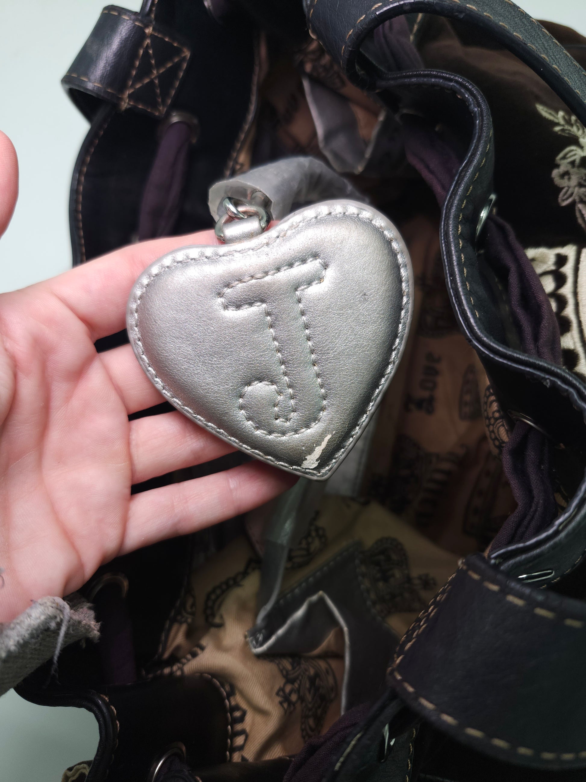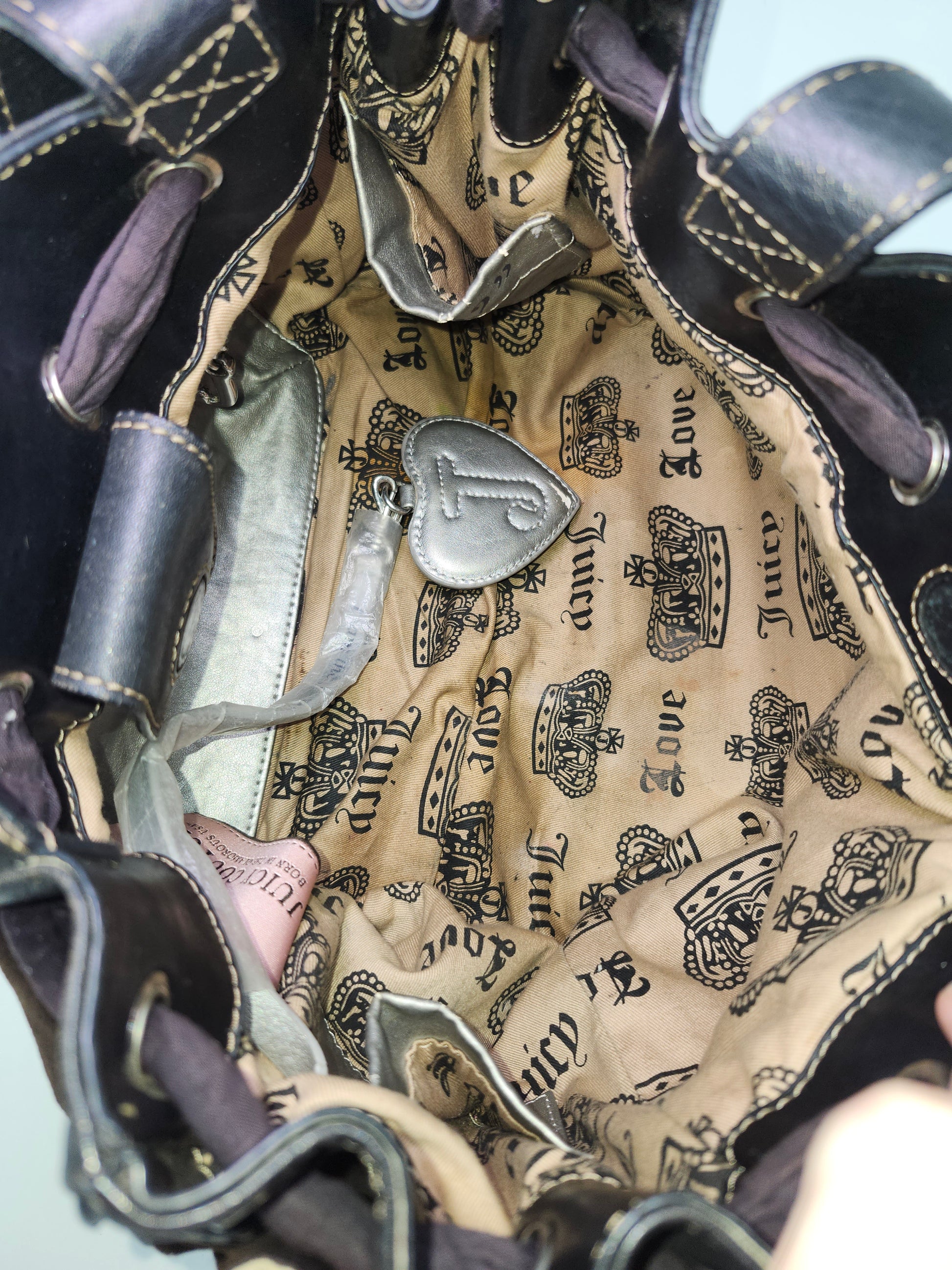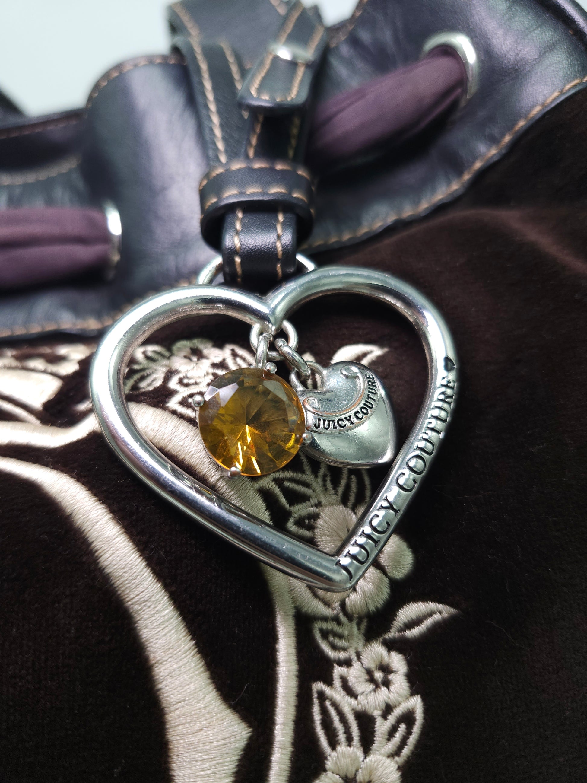 Vintage 2000's Juicy Couture Day Dreamer Plush Velour in brown with black trim. Featuring heavy embroidery, attached mini mirror & classic Juicy maximalist interior.