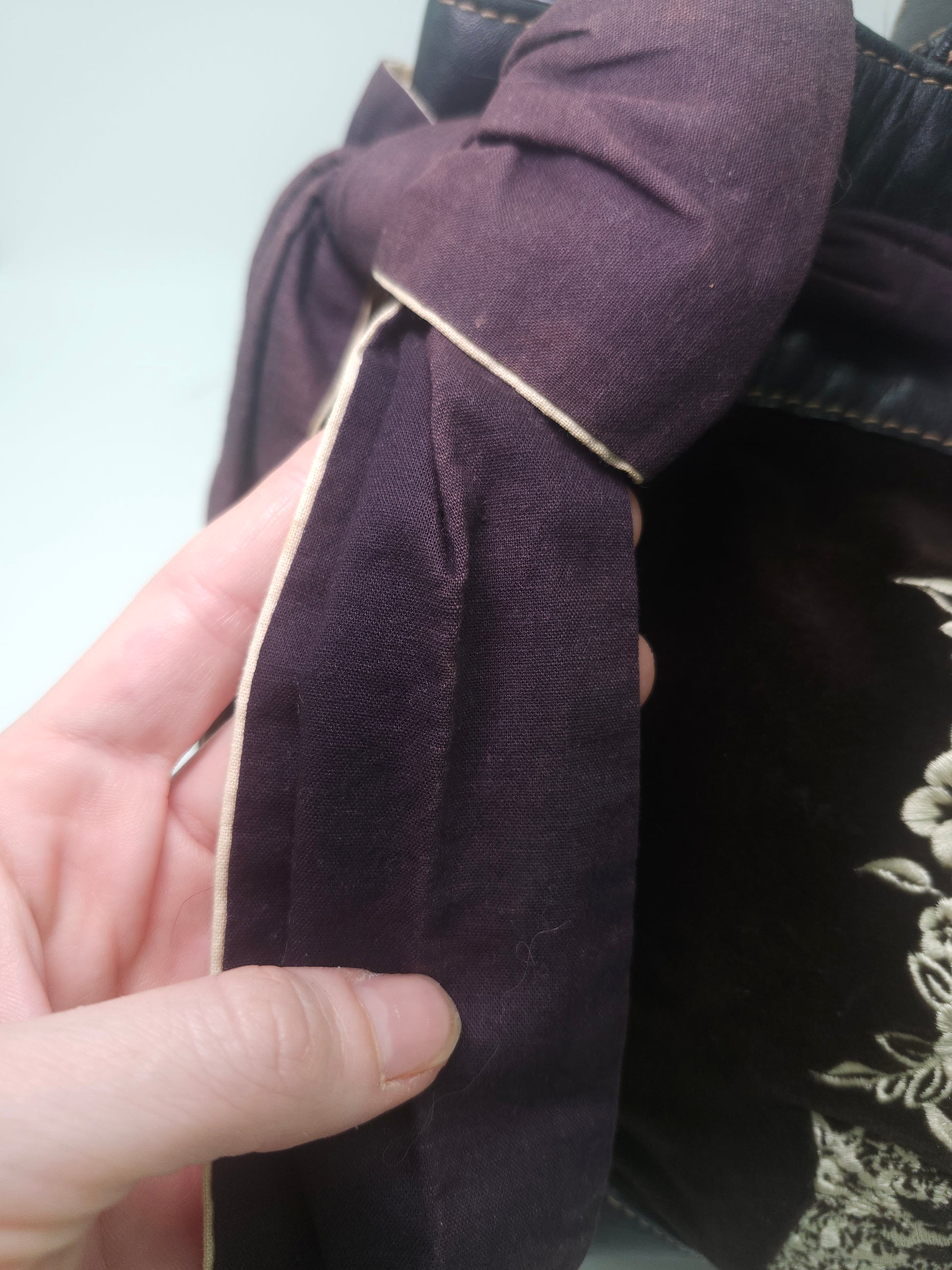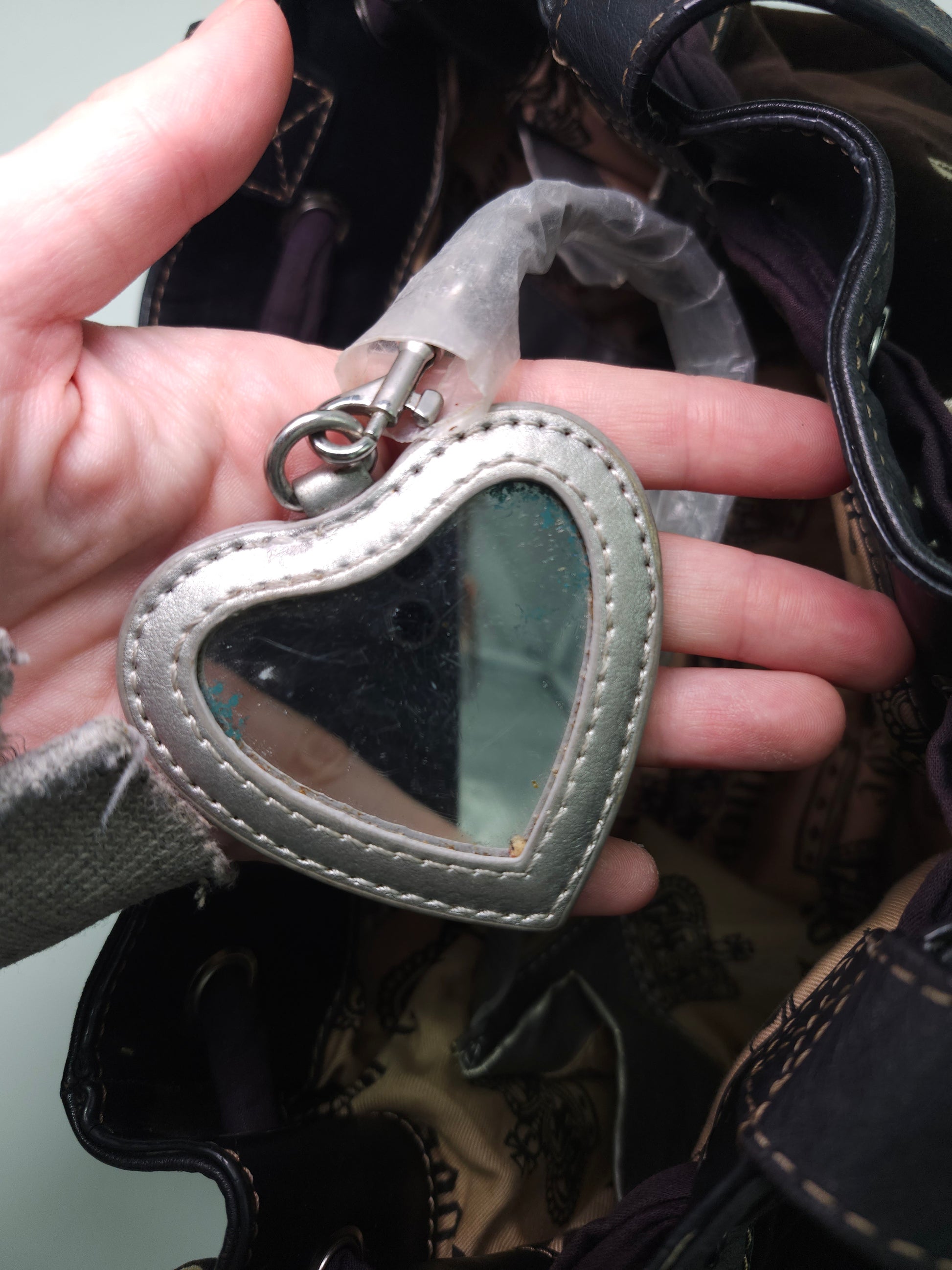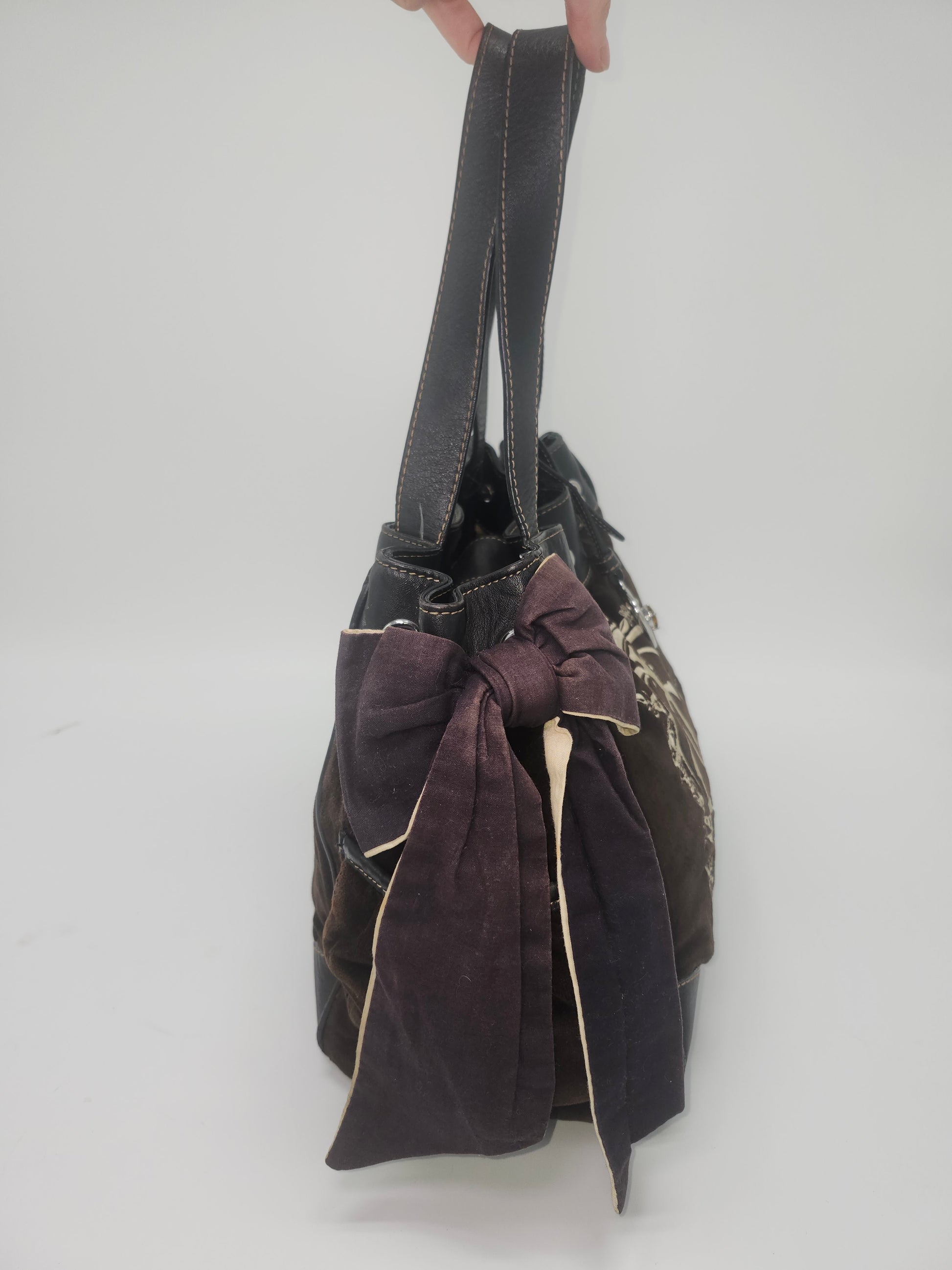 Vintage 2000's Juicy Couture Day Dreamer Plush Velour in brown with black trim. Featuring heavy embroidery, attached mini mirror & classic Juicy maximalist interior.