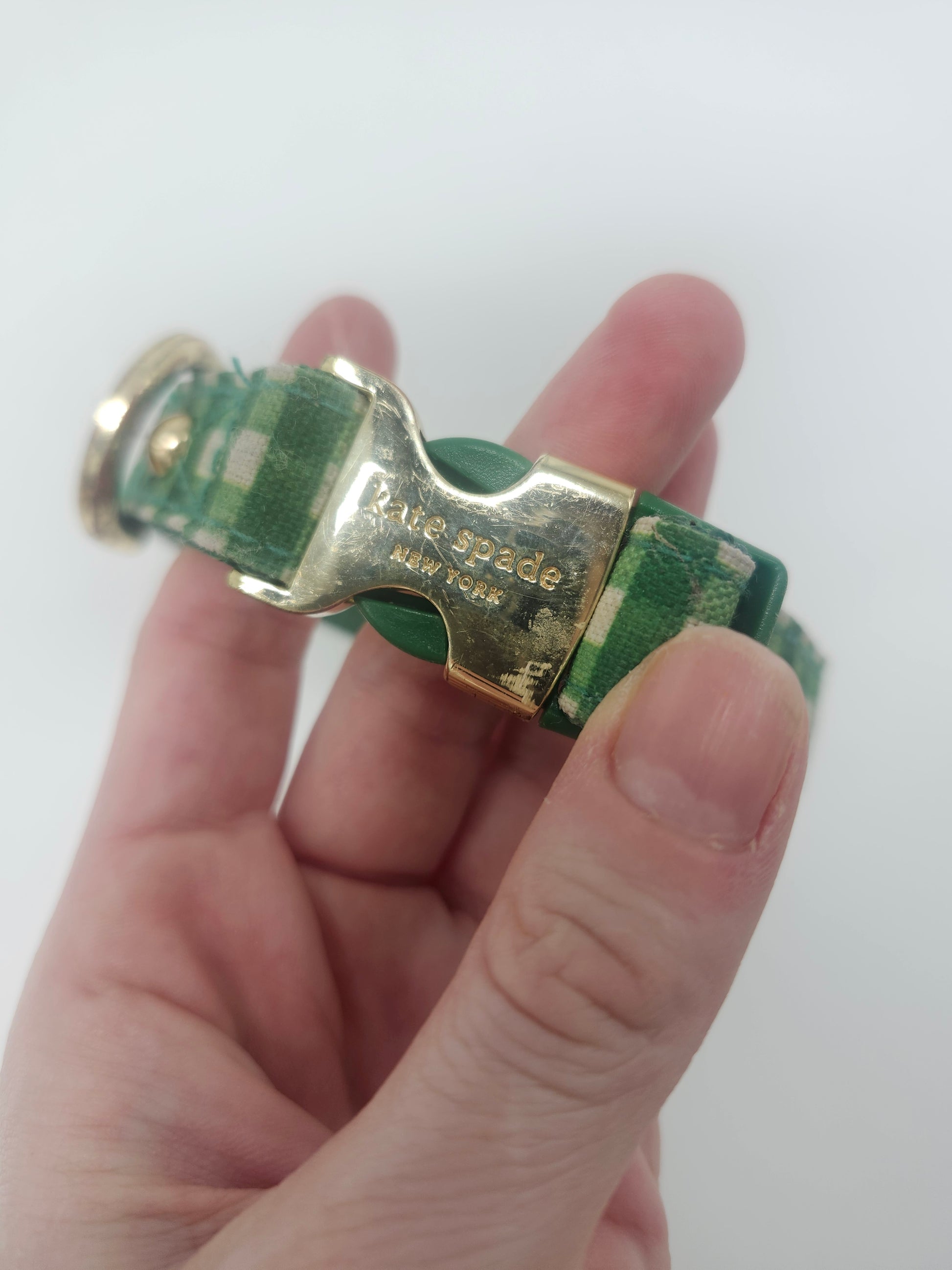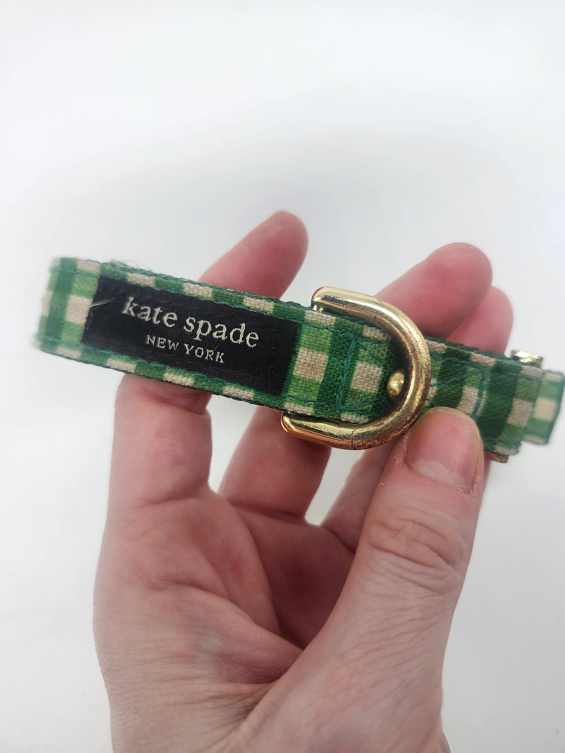 *Kate Spade* Green Gingham Print Animal Collar, adjustable length, brass hardware.