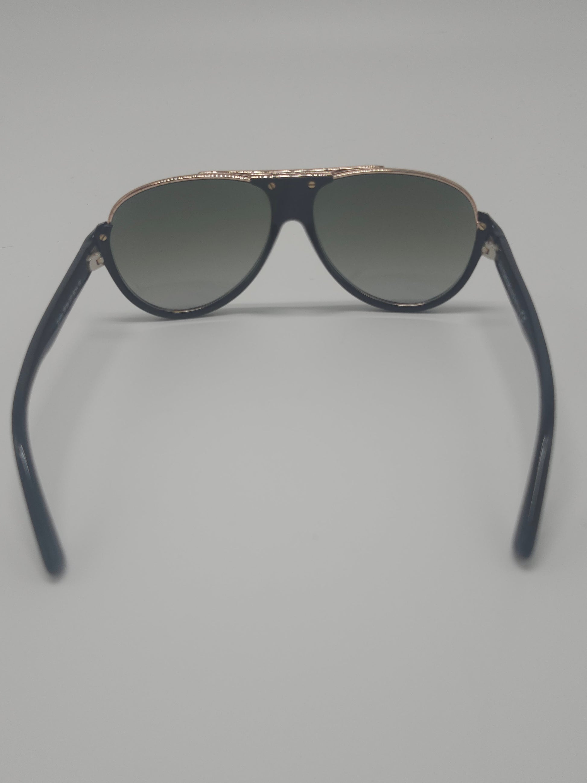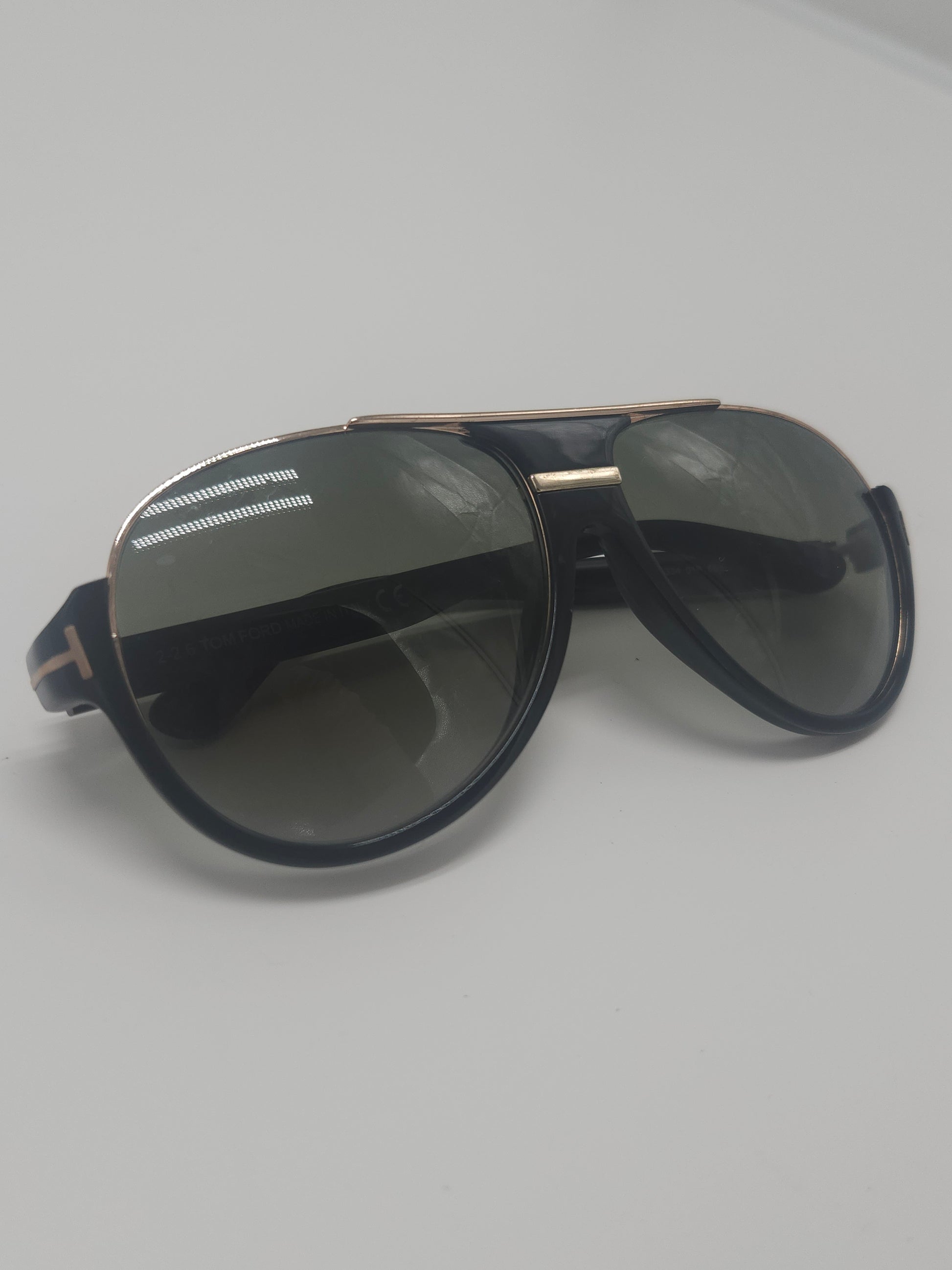 Tom Ford Dimitry Black Lens Sunglasses, inlaid gold tone hardware, iconic "T" stripe down each side.
