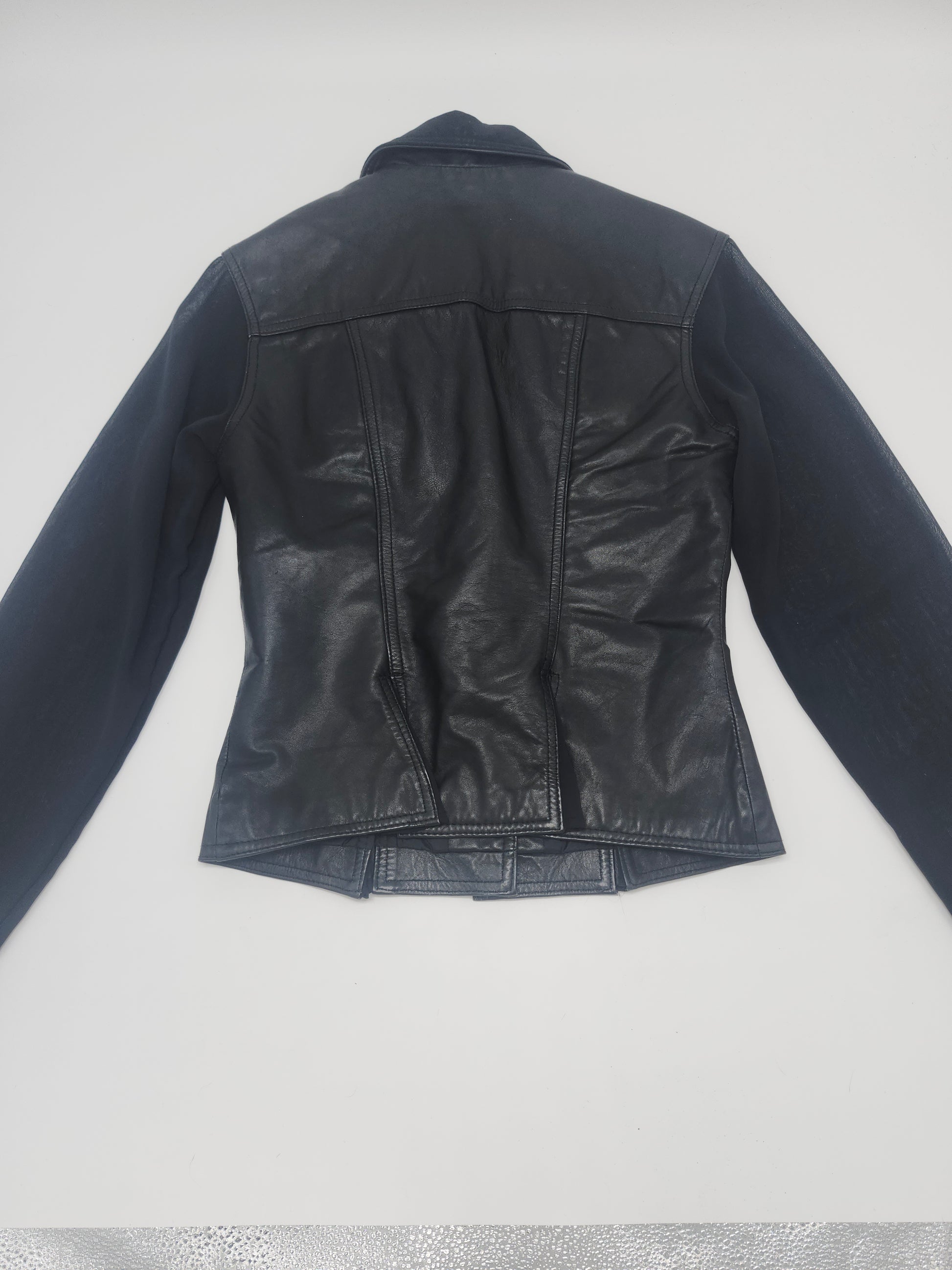 Black Leather Moto Jacket with Sheer Sleeves Vintage Size M